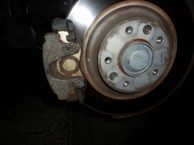 左ピストン側だけ押さえつけるバネが無く、ブレーキペダルを離すとキャリパーが