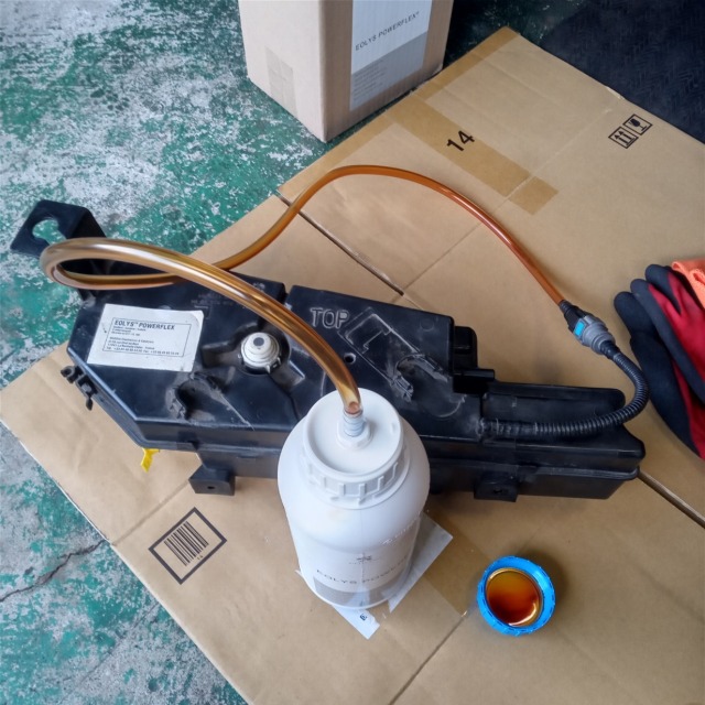こげ茶色の泥っとした液体で、これを自然落下でタンクに充填します。