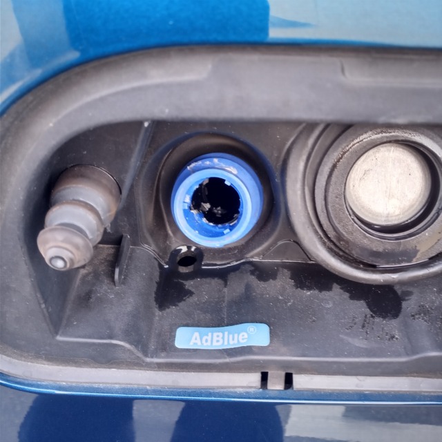 アドブルータンク投入口に白く付着している塊が、結晶化しているアドブルー液です。