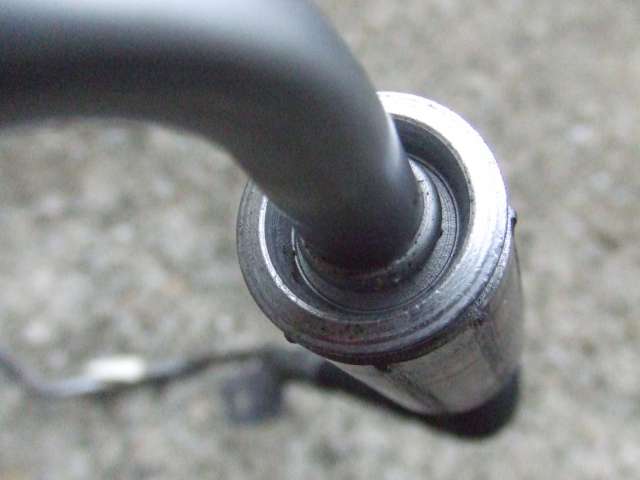 パイプと加締めのホースとの接続部の下側に、オイルが溜まっているのが判ります?