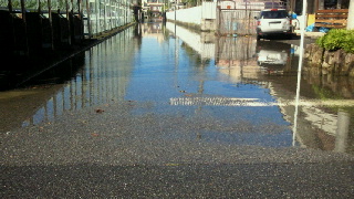2014100617030000 路地がいたる所で冠水してしまったようです。