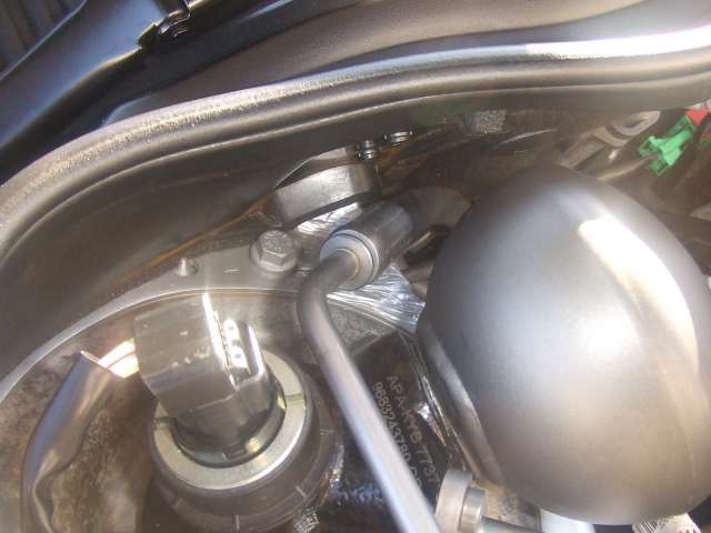 フロント右のストラット高圧ホースですが、年式で仕様変更になっているようです。