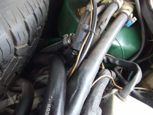 しばらく暖機運転で様子を見ていると、リターンホースにクラックが入り