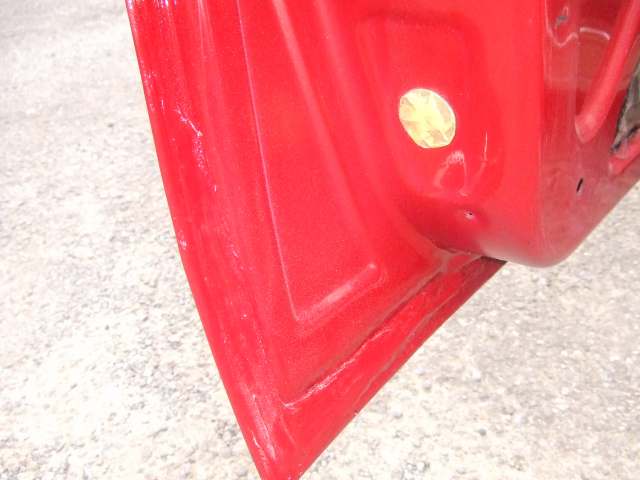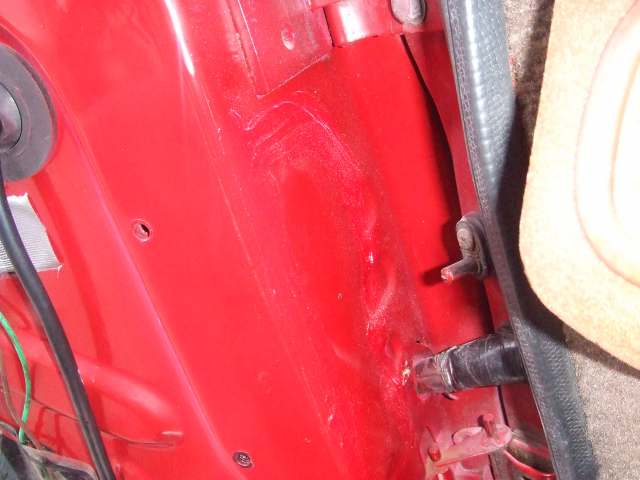 運転席側ドアヒンジのパネルに錆で穴が開いていましたが、鉄板を貼って