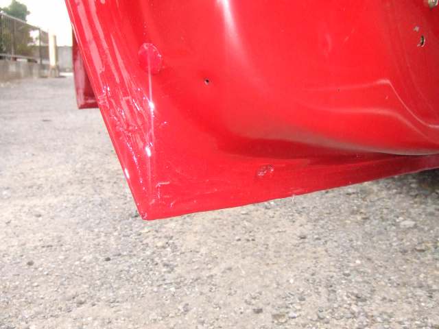 古いクルマは必ず錆びているドアの下側、ここは雨水が抜ける所なので